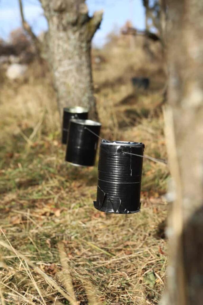 Peinture métallique (facultative) : si vous voulez vraiment avoir de la fantaisie avec votre piège, envisagez de peindre les boîtes de conserve nettoyées avec de la peinture en aérosol à finition mate pour vraiment les noircir et les rendre difficiles à remarquer. Ça fait la différence !